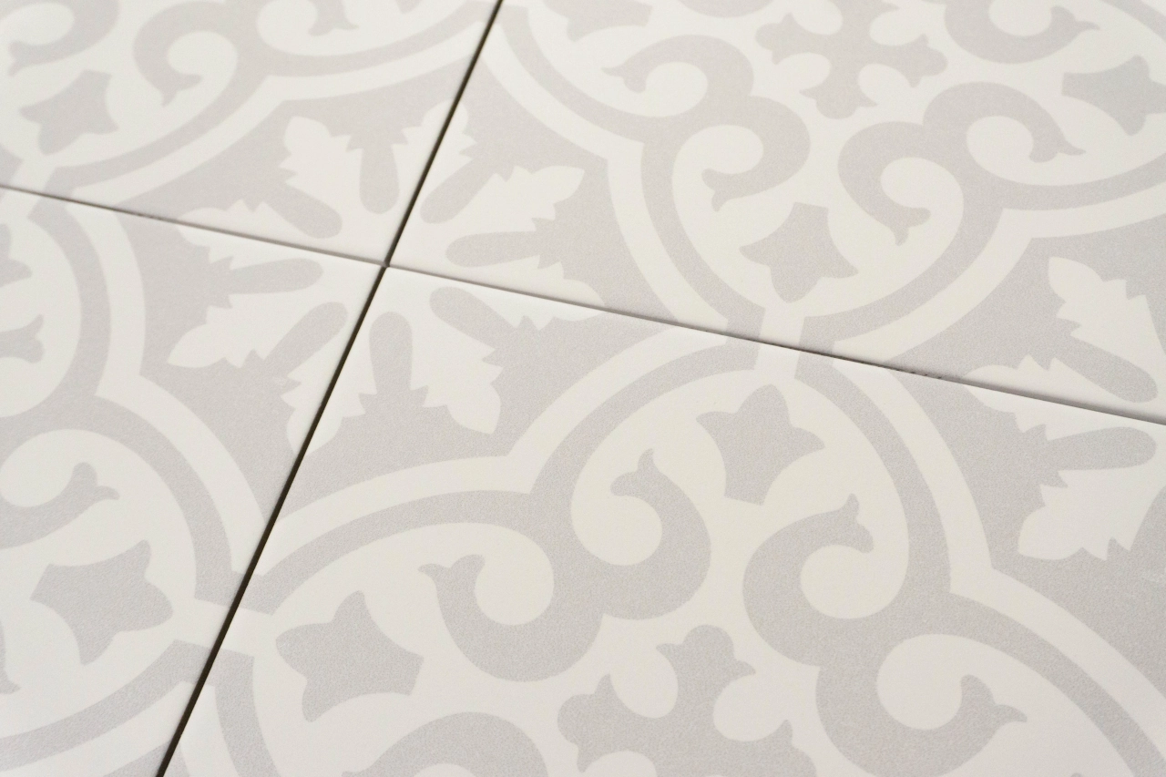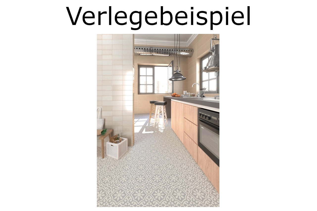 Die Fliese in den Farben grau und beige ist ein Feinsteinzeug im Vintage-/Retro-Stil und kann als Wand- und Bodenfliese verwendet werden.