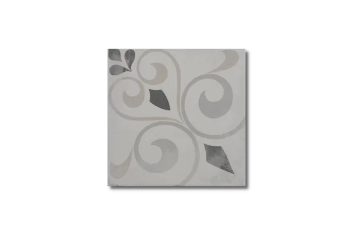 Die Fliese in den Farben anthrazit, grau und creme ist ein Feinsteinzeug im Vintage-/Retro-Stil und kann als Wand- und Bodenfliese verwendet werden. Sie ähnelt optisch einer Achteck-Fliese, lässt sich aber leichter verlegen.