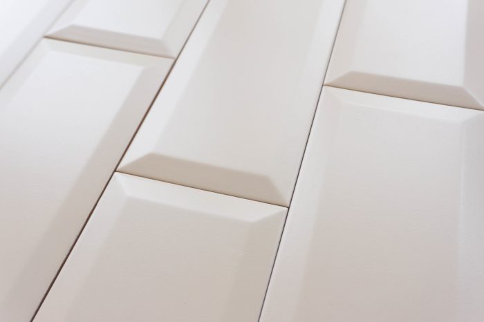 Die Metrofliese in der Farbe beige ist pflegeleicht und verfügt über Presskanten. Presskanten sind leicht abgewinkelte Kanten, die die Fliesen durch das Pressen in die Form erhalten.