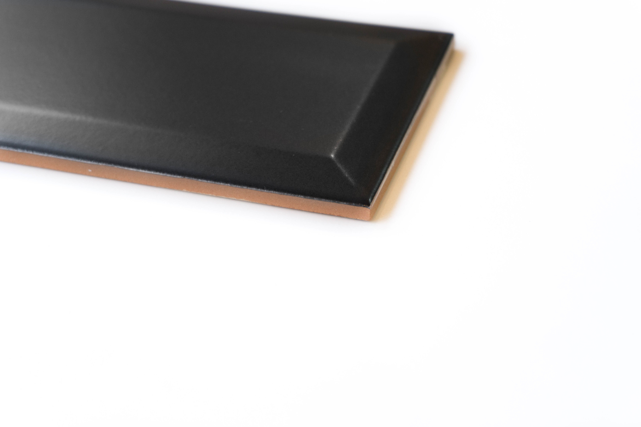 Die Metrofliese in der Farbe schwarz ist pflegeleicht und verfügt über Presskanten. Presskanten sind leicht abgewinkelte Kanten, die die Fliesen durch das Pressen in die Form erhalten.