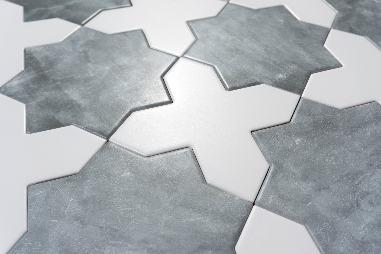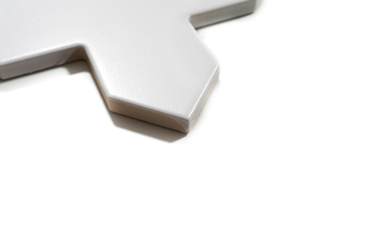 Die Bodenfliese in weiß ist ein pflegeleichtes Feinsteinzeug und ist auch als Wandfliese geeignet.