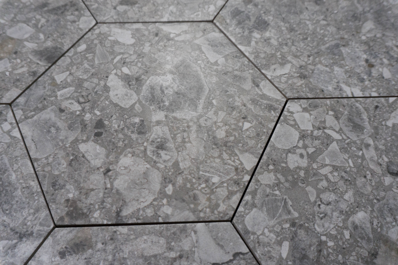 Die Fliese in der Farbe grau ist ein pflegeleichtes Feinsteinzeug in Terrazzo-Optik. Sie ist für den Innen- und Außenbereich gedacht und kann als Wand- und Bodenfliese genutzt werden.