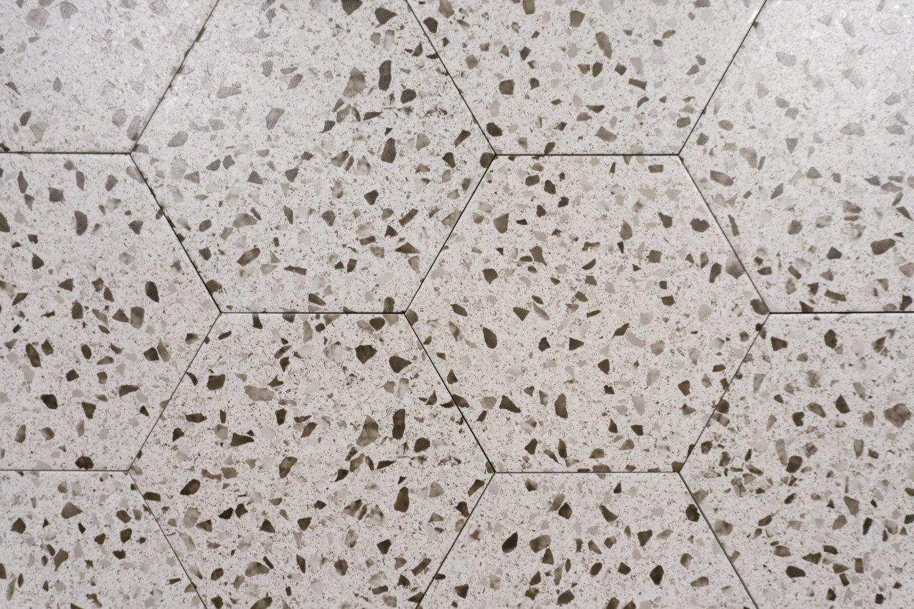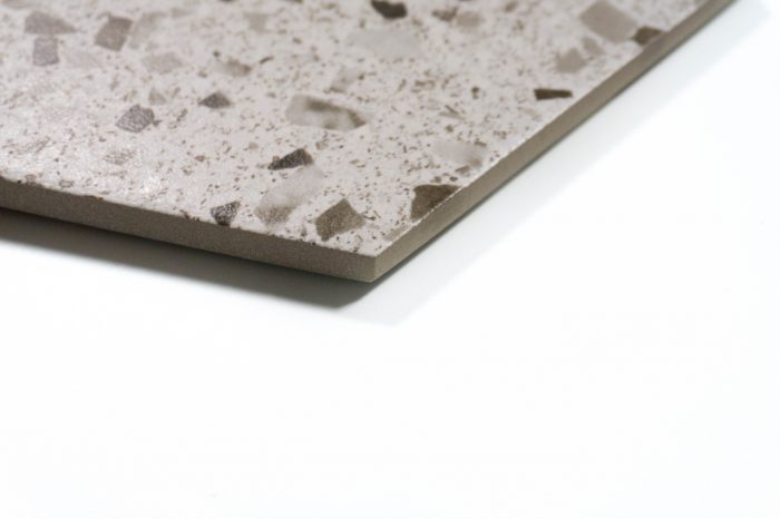 Die Fliese in der Farbe weiß ist ein pflegeleichtes Feinsteinzeug in Terrazzo-Optik. Sie ist für den Innen- und Außenbereich gedacht und kann als Wand- und Bodenfliese genutzt werden.