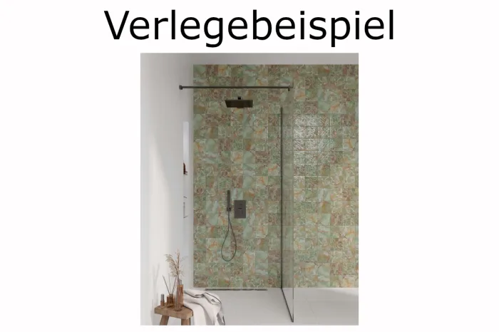 Die Wandfliese in der Farbe grün mit brauner Marmorierung ist ein pflegeleichtes Feinsteinzeug und ideal für die Verlegung im Pool geeignet.
