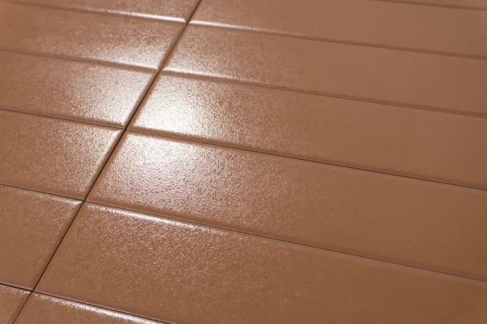 Die Wandfliese in dunklem rosa-orange ist ein pflegeleichtes Feinsteinzeug mit leichtem Glanz, welche mit der matten Variante kombiniert werden kann um ein modernes und interessantes Verlegebild zu erhalten. Beim Verlegen wird vom Hersteller eine Fuge von 2 mm empfohlen.